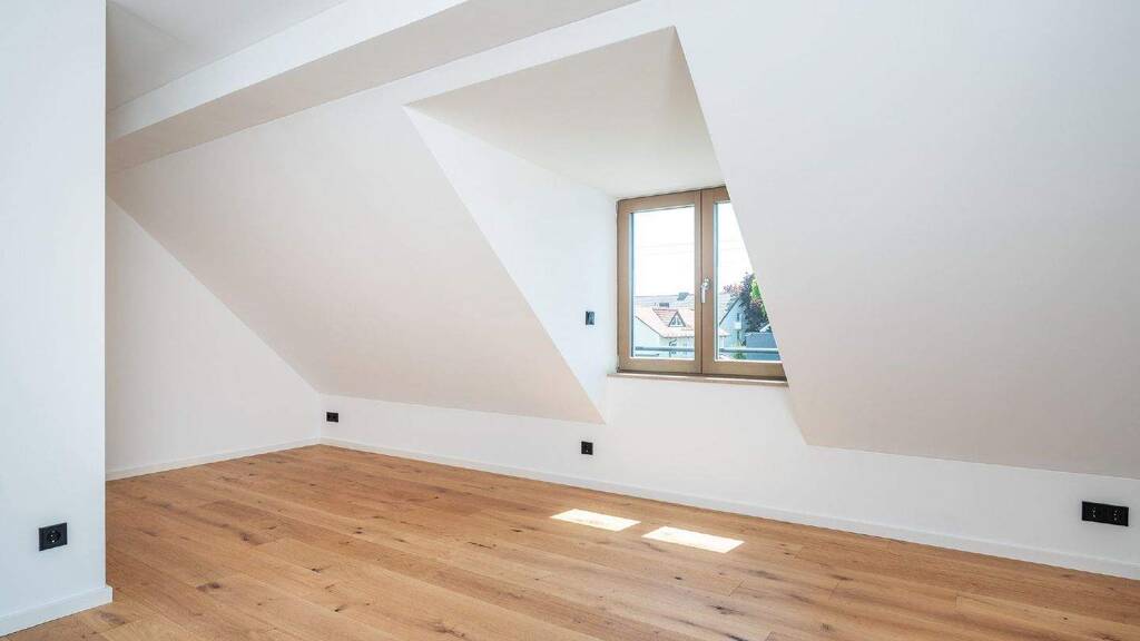 Über die innenliegende Treppe gelangen Sie ins Dachgeschoss, das mit zwei weiteren Zimmern - perfekt als Kinder-, Gäste- oder Arbeitszimmer - überzeugt. Hier befindet sich zudem ein zweites Duschbad, das zusätzlichen Komfort bietet. Beide Zimmer verfügen über charmante Dachflächenfenster, die für viel Tageslicht und eine angenehme Wohnatmosphäre sorgen.