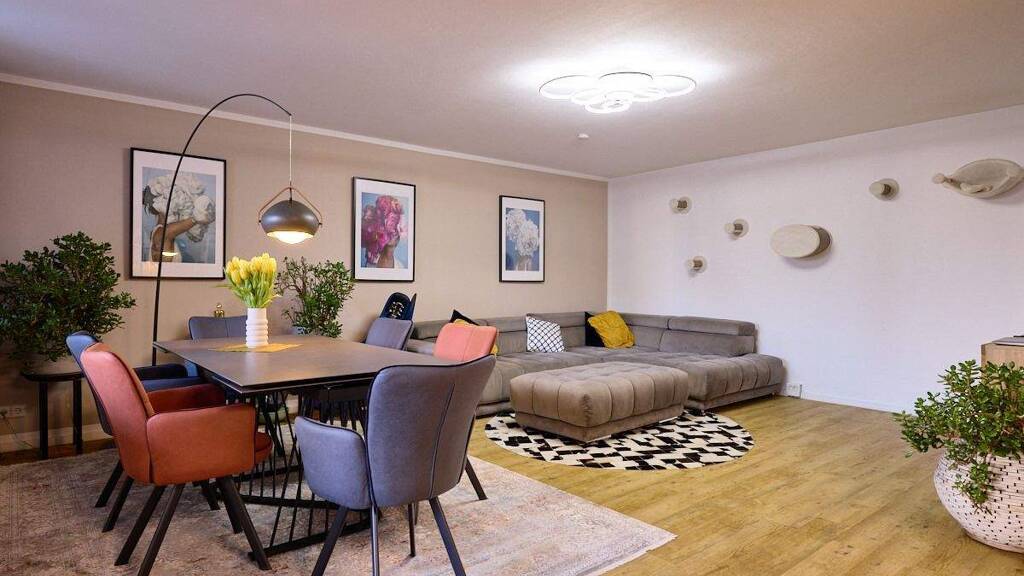 Im Herzen von Fellbach befindet sich diese besondere Wohnung im ersten Obergeschoss eines gepflegten Hauses, die bequem mit dem Aufzug erreichbar ist. Auf rund 155 Quadratmetern Wohnfläche verbindet sie modernes Wohnen mit einer warmen und einladenden Atmosphäre. Der helle und großzügige Wohn und Essbereich bildet das Herzstück der Wohnung. Große Fensterflächen sorgen für viel Tageslicht, während abgehängte Decken mit indirekter Beleuchtung eine moderne und zugleich gemütliche Stimmung schaffen.