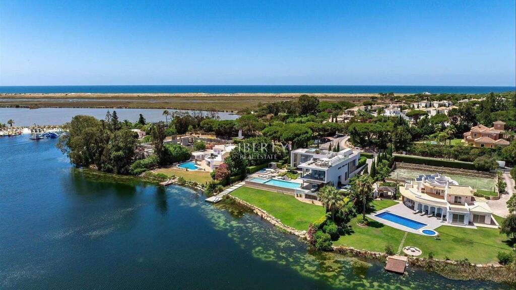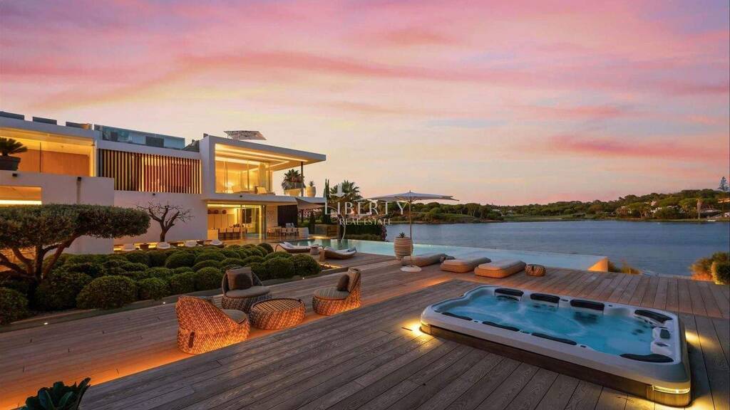 Auf einem erstklassigen, ultra-exklusiven Grundstück am Wasser in einer der begehrtesten Adressen der Algarve gelegen, bietet diese außergewöhnliche Villa am See in Quinta do Lago eine seltene Gelegenheit, eine Immobilie von unvergleichlichem Kaliber zu erwerben. Entworfen vom renommierten Architekten Vasco Vieira und mit exquisitem Innendesign von Pure Allure, verfügt diese atemberaubende, zeitgenössische Villa über einen Golftitel und genießt einen direkten Zugang zum See über einen eigenen privaten Anlegesteg. Immobilien dieser Statur und Umgebung sind auf dem lokalen Markt selten erhältlich. Dies ist eine Immobilie, die auf Schritt und Tritt ein Wow liefert, ein Zuhause, das Gelassenheit mit Raffinesse, Entspannung mit Unterhaltung verbindet.