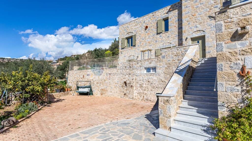 Nur 1000 Meter von den schönen Stränden von Stoupa entfernt steht auf einem eigenen Grundstück von 450 m2 eine dreistöckige Burgartige Liegenschaft mit einer Gesamtfläche von 200 m2.