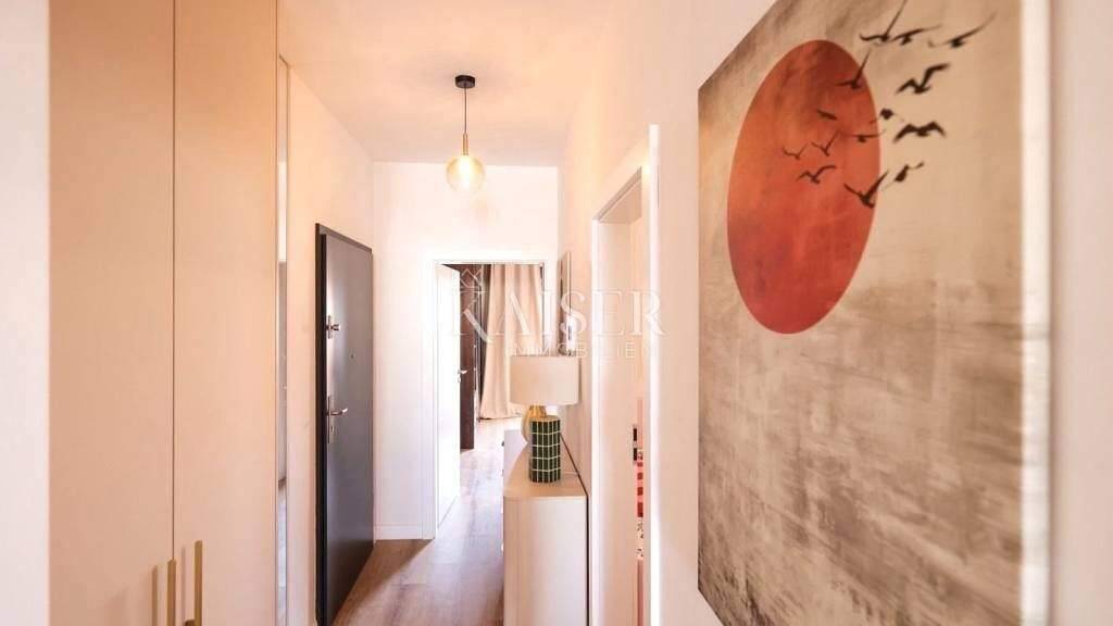 Kaiser Immobilien bietet eine moderne Dreizimmerwohnung in einem Neubau in Visnjik an. Die Wohnung befindet sich im zweiten Obergeschoss eines 2025 erbauten Gebäudes mit Aufzug und Anschluss an die städtische Wasser- und Abwasserversorgung.