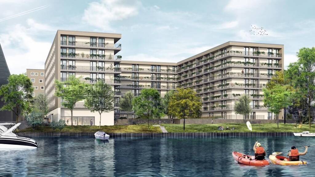 Fertigstellung des Neubaus ist Mai 2026 - vor Ort werden nur Musterwohnungen gezeigt.