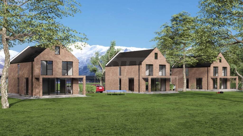 Grundstück mit einem Projekt für drei Einfamilienhäuser mit Gärten in Novi Iskar