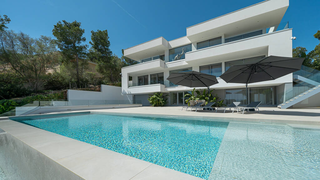 Diese Designervilla, die 2021 fertiggestellt wurde, wurde nur mit den hochwertigsten Materialien gebaut. Das 600 m2 große Anwesen verfügt über 5 Schlafzimmer und 5 Bäder (4 davon en suite), die sich auf 3 Etagen verteilen, die mit einem Aufzug erreichbar sind. Die Immobilie steht auf einem Grundstück von ca. 1.270 m2 in einer ruhigen Sackgasse und bietet einen spektakulären Blick auf das offene Meer, die Bucht von Palmanova und die umliegende Landschaft. Die Villa ist ab sofort bezugsfertig.