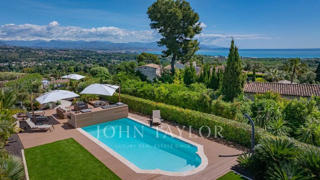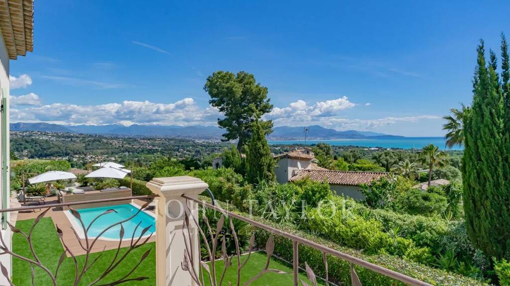 Cette villa entourée d'un joli et soigné jardin méditerranéen (arrosage automatique), avec une vue magnifique mer et montagne, bénéficie d'une piscine chauffée (volet roulant de protection) entourée par une grande terrasse. Une seconde terrasse avec son terrain de boules et une vue panoramique sur les montagnes et la mer. Petit verger pour les amateurs de fruits.