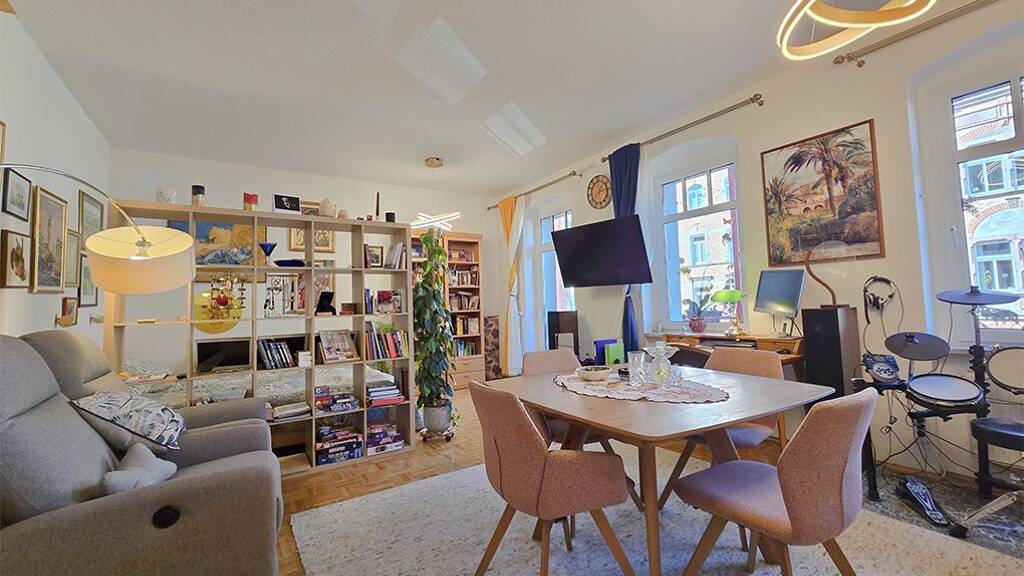 Diese charmante Eigentumswohnung befindet sich im 1. Obergeschoss eines gepflegten 4-Parteienhauses aus dem Jahr 1910. Das Mehrfamilienhaus mit harmonischer Eigentümergemeinschaft wurde 1996 grundhaft saniert. Auf ca. 91 m² Wohnfläche überzeugt die Wohnung mit einer durchdachten Raumaufteilung, hellen Zimmern und einem angenehmen Wohnambiente. Der Flur verbindet die einzelnen Räume der Wohnung und führt Sie in das geräumige Wohn- und Esszimmer, das Herzstück der Wohnung. Von hier gelangen Sie auf den ruhigen, nordwestlich ausgerichteten Balkon, der zum Verweilen einlädt. Zwei weitere gut geschnittene Zimmer bieten vielseitige Nutzungsmöglichkeiten, ob als Schlaf-, Kinder- oder Arbeitszimmer. Zudem verfügt die Wohnung über ein Tageslichtbad mit Dusche und Badewanne. Die Zimmer sind mit hochwertigem Stäbchenparkett und hohen Decken ausgestattet, was den besonderen Charme der Wohnung zusätzlich unterstreicht. Zu der Wohnung gehören außerdem zwei praktische Abstellräume, ein Gewölbekeller sowie ein gemeinschaftlicher Waschmaschinen- und Trockenraum. Für Ihr Fahrzeug steht Ihnen ein Stellplatz im Innenhof zur Verfügung. Damit kombiniert die Immobilie stilvolles Wohnen mit praktischen Details und stellt ein attraktives Zuhause in gefragter Wohnlage dar. Die Wohnung wird voraussichtlich im Juli 2026 freigezogen und eignet sich damit sowohl für Eigennutzer als auch für Kapitalanleger. Lassen Sie sich diese Gelegenheit nicht entgehen und vereinbaren Sie einen Besichtigungstermin.