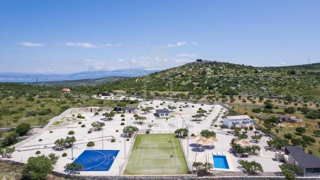 Kurzbeschreibung hacienda-brac-tennisplatz-golf Objekt Willkommen in Ihrem persönlichen Refugium auf der bezaubernden Insel Brac! Dieses exklusive Anwesen bietet Ihnen eine beeindruckende Palette an Premium-Ausstattungen, die das Lebensgefühl von Luxus und Freizeitvergnügen perfekt vereinen. Auf dem weitläufigen Gelände finden Sie nicht nur eine vollständig möblierte Villa, sondern auch eine Vielzahl von Sport- und Freizeitmöglichkeiten, die keinen Raum für Langeweile lassen. Genießen Sie sonnige Tage in Ihrem überdachten Whirlpool oder spielen Sie eine Runde Tennis auf dem professionellen Platz. Für Sportbegeisterte stehen ein Basketballplatz, ein Fußballfeld und ein Fitnessstudio im Freien bereit. Familienfreundlichkeit wird großgeschrieben: Kinder können sich auf dem Spielplatz, beim Minigolf oder auf der Bocciabahn austoben. Und für gesellige Abende mit Freunden erwarten Sie ein Billardtisch und Darts. Dieses ruhige und einzigartige Anwesen ist nicht nur ein Ort der Entspannung und des Vergnügens, sondern auch eine hervorragende Investitionsmöglichkeit. Ideal für eine Sommerresidenz oder als Ferienunterkunft, die Ihren Gästen ein unvergleichliches Erlebnis bietet, ganz gleich zu welcher Jahreszeit. Lassen Sie sich von diesem einmaligen Lebensstil verzaubern!