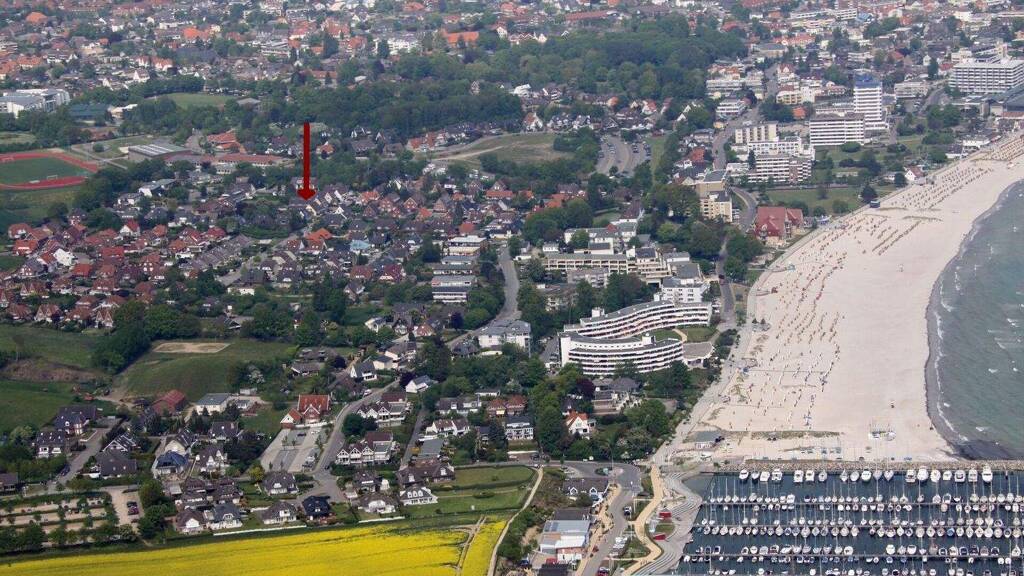In ruhiger, erhöhter Lage oberhalb von Grömitz, zwischen Yachthafen und Seebrücke, befindet sich dieses hochwertige Reihenhaus. Es liegt in einem gepflegten Wohngebiet, das überwiegend von Einfamilienhäusern geprägt ist.