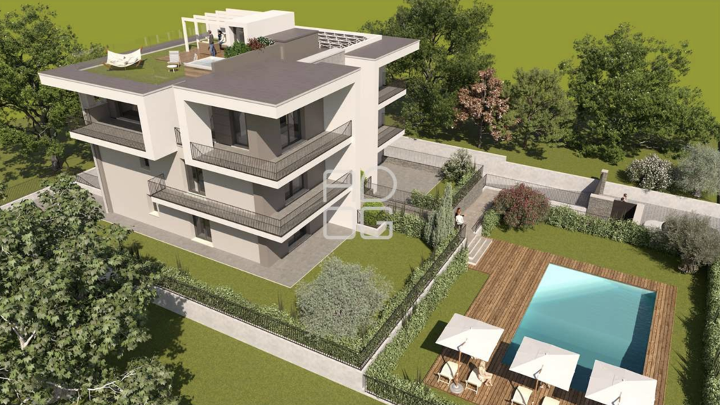 In der Nähe des Stadtkerns und des Bahnhofs von Desenzano del Garda, in einer ruhigen und eleganten Wohngegend mit guter Anbindung an alle öffentlichen Einrichtungen, bieten wir diese exklusive Wohneinheit in einem Design-Komplex namens "RESIDENZA AI POETI" zum Verkauf, der aus nur fünf prestigeträchtigen Wohneinheiten besteht, vervollständigt durch einen schönen Schwimmbad- und Gemeinschaftsbereich. Der Komplex mit seinem modernen Design wird mit besonderem Augenmerk auf bauliche Details und mit hochwertigen Oberflächen gebaut, um einen hohen Klasse-A-Standard zu garantieren. Eine erdbebensichere Konstruktion der neuesten Generation, Basis-Hausautomatisierungssystem mit Fernbedienung, Video-Gegensprechanlage, Photovoltaikanlage, Fußbodenheizung und Prädisposition für eine Klimaanlage, Aufzug, hochwertige Ausbaumaterialien, die nach den Vorgaben des Bauherrn angepasst werden können. Das exklusive und großzügige Penthouse liegt im zweiten und letzten Obergeschoss und ist mit wunderschönen Terrassen, wo man sich im Freien aufhalten und den herrlichen Blick auf den See und die Dächer der Stadt genießen kann. Im Inneren besteht die Wohnung aus einem großen Eingangsbereich mit direktem Zugang vom Aufzug, einem großen und schönen Wohnbereich mit offener Küche und Zugang zu den überdachten Terrassen durch die großen Fenstertüren, einem geräumigen Korridor, drei Schlafzimmern, von denen das Hauptschlafzimmer über einen begehbaren Kleiderschrank und ein eigenes Badezimmer verfügt, und zwei weiteren Badezimmern, eines davon mit einem getrennten Wäschereibereich. Über eine private Treppe gelangt man auf die Dachterrasse, auf der Außenküche und ein Whirlpool eingerichtet werden kann und von der aus man einen herrlichen, umfassenden Blick auf den See und die gesamte Umgebung genießen kann. Die großen Fenstertüren aller Räume mit direktem Zugang nach Außen garantieren eine hervorragende Helligkeit. Große Garagen, die separat erstanden werden können, stehen im über den Aufzug und ein Treppenhaus zugänglichen Untergeschoss zur Verfügung, mit Preisen ab 62.000,00 €. Für weitere Informationen, Unterlagen, Bauspezifikationen und Besichtigungen stehen wir Ihnen auf Anfrage gerne zur Verfügung.