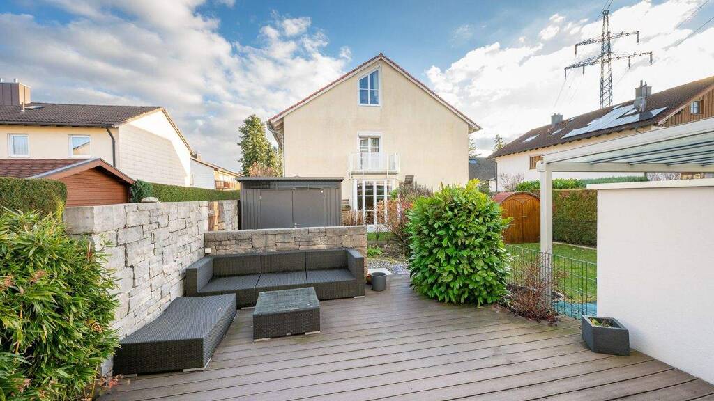.Neue hybride Gas-Brennwert-Heizung (wärmepumpenfähig) .Photovoltaikanlage .Terrasse mit Süd-Westausrichtung .Praktisches Gartenhaus .Stäbchenparkettboden im Wohnbereich .Schreinereinbauküche mit Weinschrank und Tellerwärmer .Abgehängtes beleuchtetes Deckenelement über dem Esstisch .Gäste-WC im Erdgeschoss .Hochwertiges Tageslichtbad mit Walk-In-Dusche im ersten Obergeschoss .Im Dachgeschoss: maßgefertigtes Schreinerbett mit integrierter Beleuchtung und an die Dachschrägen angepasste Schreinereinbauschränke .Hobbyraum, Ankleideraum und Waschraum im Untergeschoss