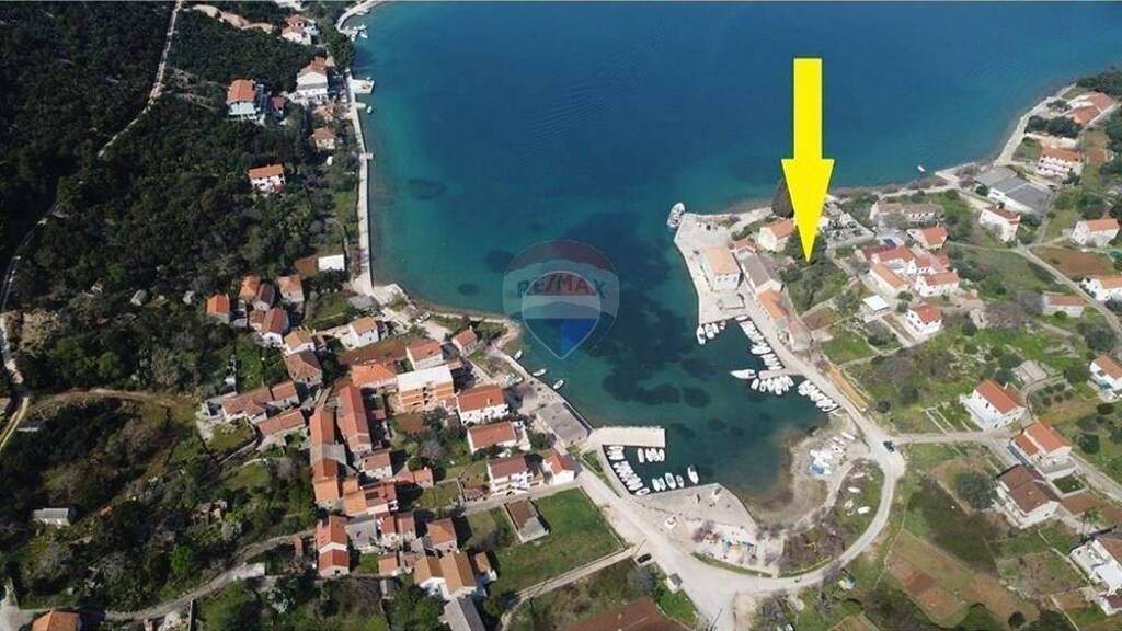 Das Grundstück befindet sich auf leicht erhöhtem Gelände und bietet einen wunderschönen Meerblick sowie zusätzliche Sicherheit. Die Umgebung ist ruhig und typisch dalmatinisch ideal für den Bau eines Ferienhauses oder zum Wohnen.