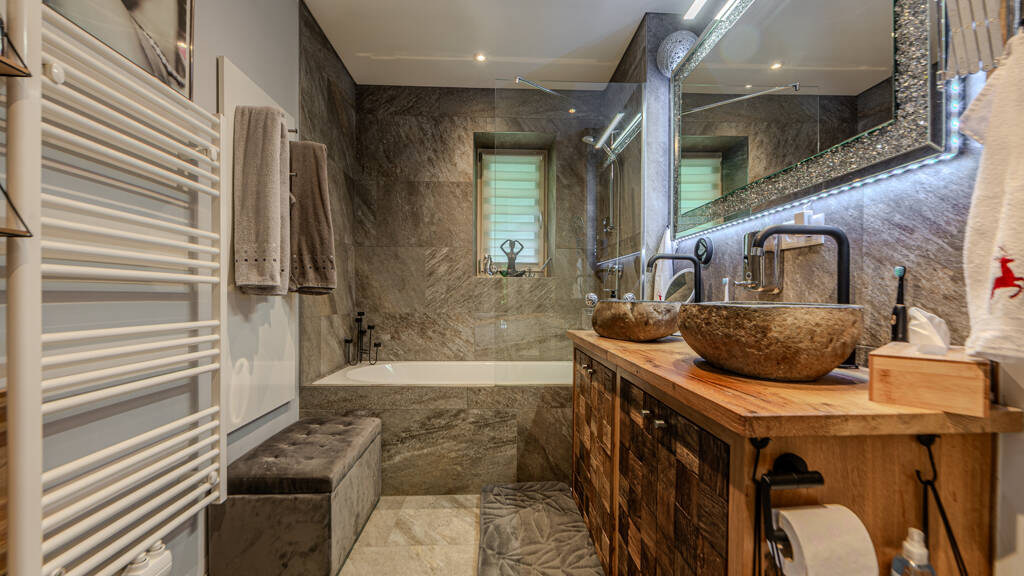 - Eichendielenböden - hochwertige Steinaufsatzbecken - Profiküche mit Geräten von Bora und Bosch sowie eine Natursteinarbeitsplatte mit Bar - Altholzvertäfelungen und hochwertige Holzarbeiten - zusätzlicher Aufenthaltsraum im Untergeschoss - Badezimmerheizkörper - elektrisch steuerbare Rollläden - Personenaufzug - Gas-Fußbodenheizung - 1 Carportstellplatz und 1 Stellplatz im Freien - Allgemeinräumlichkeiten: Fahrrad-, Müll-, Wasch- und Trockenraum