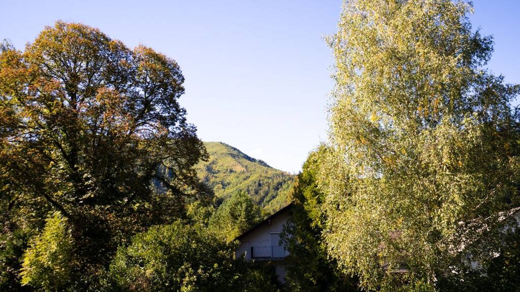 Geradeaus öffnet sich das große Wohnzimmer, das mit seiner einladenden Fensterfront und dem Zugang zum 9,5?m² großen Balkon der zentrale Lebensraum der Wohnung ist. Von hier genießen Sie die Aussicht auf die grüne Umgebung und die sanfte Bergkulisse - besonders abends, wenn die Sonne tief steht, entsteht hier eine ganz besondere Atmosphäre.