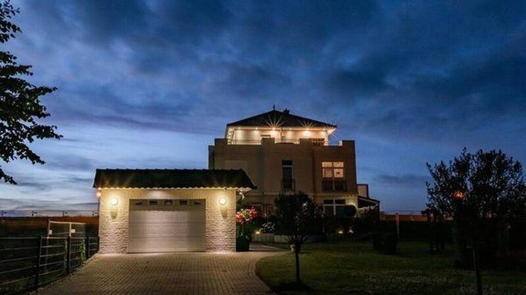 Abgabe ohne Makler ab 2026 nach Vereinbarung. Das Haus ist komplett mit Fußbodenheizung und elektrischen isolierten Rollladen ausgestattet. Neue Solaranlage mit Speicher auf der Außen Garage . 3 Fach Verglasung . Ca.400qm Wohn& Nutzfläche Außengarage 36qm, Terrasse 60 qm,76qm umlaufenden Balkon..Sehr hohe Decken für ein angenehmes Raumgefühl Deckenhöhe ca.3 Meter. Türen ca.220cm hoch .. 3 Vollgeschosse mit jeweils einem Bad /WC mit Badewanne (EG und OG)und Dusche. Hochwertige Elektroinstallation. 3 elektrische Markisen für die ca.60qm Terrasse. Alle 3 Tore sind mit einer Fernbedienung zu öffnen . Es gibt 2 Zufahrten zum Grundstück.1x vom Deichweg und eine Zufahrt über den Tannenweg von dem hinteren Bereich. 3 elektrische Doppel Flügel Tore für die Zufahrten. Umlaufender Balkon ca.75 qm Hochglanz weiß lackierte Nolte Küche.Aktuelles Modell Exclusiv Auch im Erdgeschoss befindet sich eine einfache Einbauküche. Deckenhöhe im Eingangsbereich/Gallerie über 6 Meter. Panorama Kamin von der exklusiven Firma Brunner mit optimierter Steuerung (kinderleicht). +1000 Liter Wasserspeicher in der beheizten Garage . Weiterführender Kamin .. Die Hochwertigen Weißen Türen haben eine Höhe von 220cm . Die Fenster über 250cm. Alle Fenster sind mit hochwertigen Plissees ausgestattet. Jede Etage hat eine separate Strom Verteilung ,so das jede Etage nach Bedarf über einen separaten Stromzähler abgerechnet werden kann. Zb für Ferien Vermietung bzw Ferienwohnungen. Die Stromverteilung ist für 2 weitere Zähler ausgestattet. Alle Decken haben LED Einbaustrahler und es gibt in jeder Etage eine Zentralsteuerung für die Jalousien. Die Bodenbeläge sind mit hochwertigen sandfarbenen Italienischen Keramik Fliesen belegt. Überall sind Warmwasser und Kaltwasserzähler verbaut. Alle 3 Duschen sind ebenerdig und Barriere frei. Unten und Oben befinden sich zusätzlich große Badewannen. Elektrische Jalousien im ganzen Haus.
