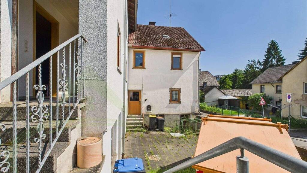 Zum Ausstattungsumfang gehört eine Einbauküche im neueren Gebäudeteil. Die Beheizung erfolgt über eine Ölheizung aus dem Jahr 1995. Einzelne Fenster wurden bereits erneuert, insgesamt befindet sich die Immobilie jedoch in einem sanierungsbedürftigen Zustand. Besonders im Altbau zeigen sich deutliche Gebrauchsspuren: Abgenutzte Bodenbeläge, veraltete Wandverkleidungen und altersbedingte Abnutzungen machen umfassende Renovierungsarbeiten erforderlich. Gleichzeitig eröffnet dieser Zustand viel Raum für eigene Gestaltungsideen und individuelle Ausbaukonzepte.