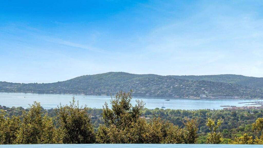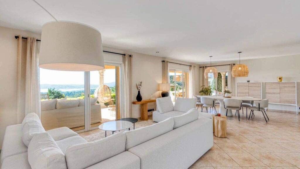 In Grimaud, a quiet, sought-after neighbourhood, we are pleased to offer you a beautiful 12-room villa of 464m2 with panoramic sea views and a glimpse of the old village of Saint-Tropez.