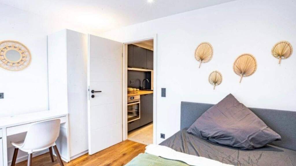 *Komfortables Bett *Schreibtisch mit Stuhl (perfekt für Studium oder Homeoffice) *Großer Kleiderschrank *Helle und freundliche Gestaltung *WG-gerechte Raumaufteilung
