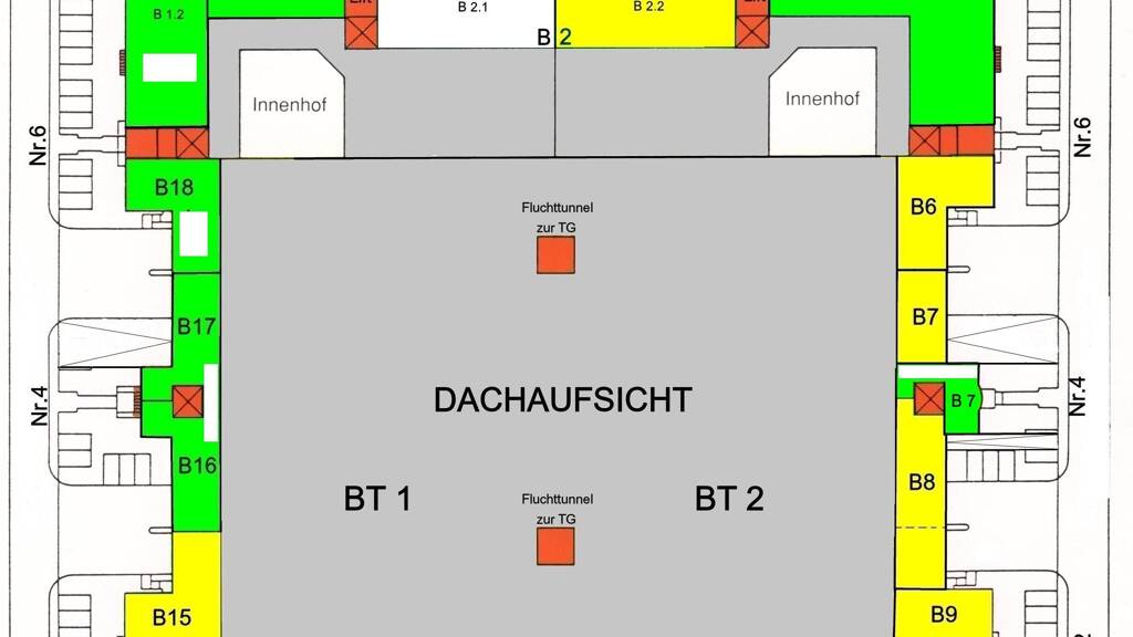 Ein nachträglicher Anbau eines Außen-Lastenaufzugs wäre nach statischer Prüfung und mit Absprache des Vermieters möglich.