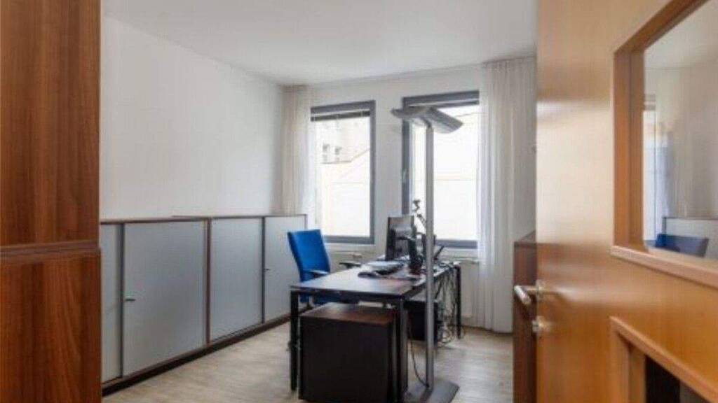 Die Raumaufteilung: - repräsentativer Eingangsbereich mit eigenem Garderobenbereich - 6 getrennt begehbare Büros für zwei und mehr Mitarbeiter pro Raum - Raum 1 in begrünten Innenhof - Raum 2 in begrünten Innenhof - Raum 3 in begrünten Innenhof - Raum 4 in begrünten Innenhof - Raum 5 in großen Innenhof - Raum 6: Sozialraum mit Küche in Richtung Innenhof mit Ausgang zur Feuertreppe und in den begrünten Innenhof - Herrentoilette - Damentoilette