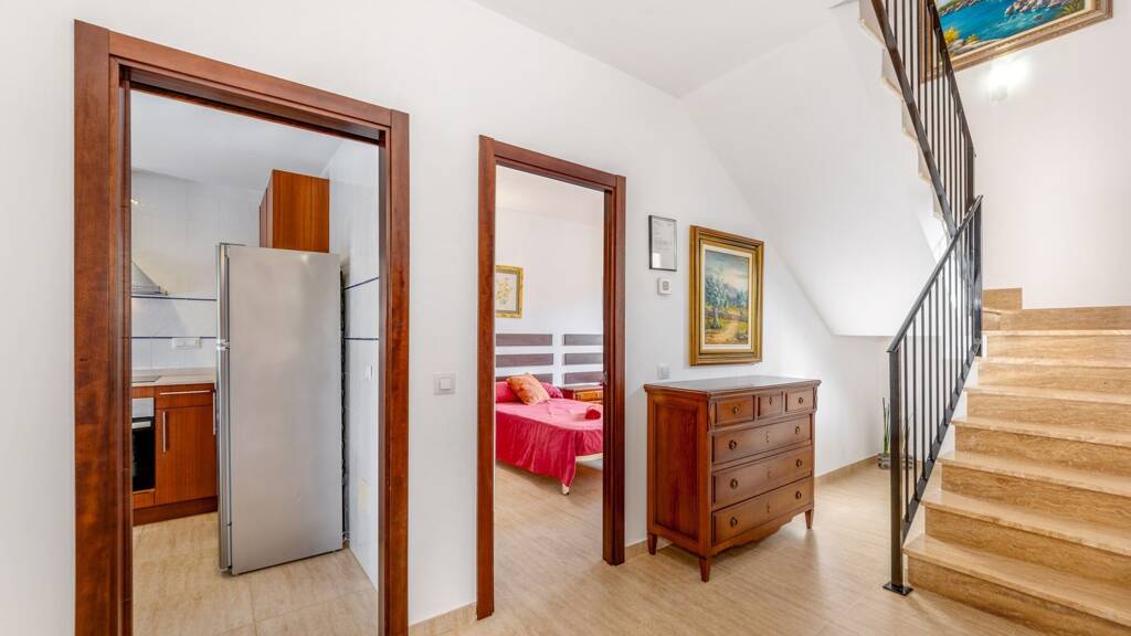 Im Obergeschoss befinden sich drei weitere geschmackvoll eingerichtete Doppelschlafzimmer sowie ein Badezimmer. Alle Wohnräume sind mit Klimaanlagen und Heizkörper ausgestattet, um das ganze Jahr über ein angenehmes Raumklima zu gewährleisten.