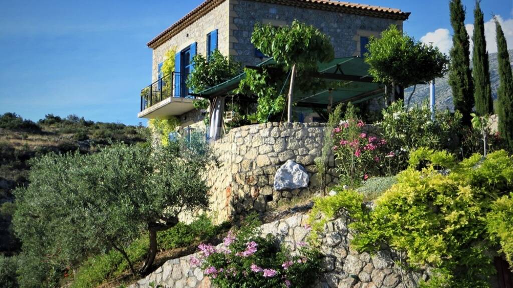 Steinhaus (Bestand) + Baugenehmigung für weitere 200 m²! Blick auf das endlose Blau nahe Kardamili.