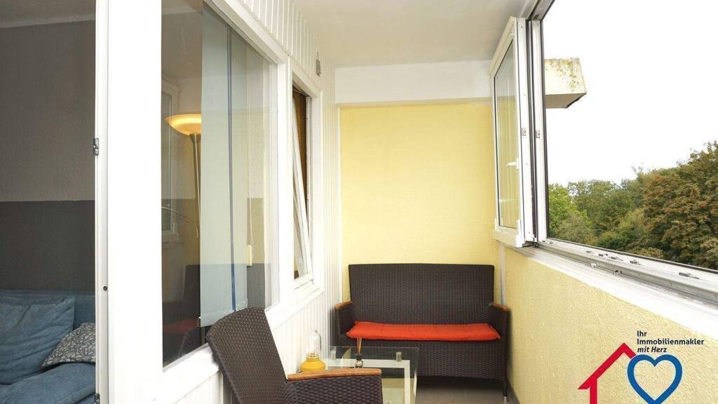 Die Wohnung verfügt über eine Wohnfläche von ca. 40 m² und umfasst 1,5 Zimmer, eine Einbauküche im Flurbereich sowie ein Badezimmer mit Dusche. Die vollständig verglaste Loggia ist nach Osten ausgerichtet, bietet einen schönen Blick ins Grüne und schafft Urlaubsatmosphäre. Zwei der vier großen Fensterelemente lassen sich zur Seite schieben, sodass Sie bei frischer Luft die Morgensonne genießen und entspannt frühstücken können.