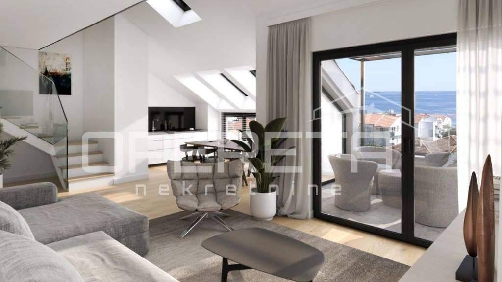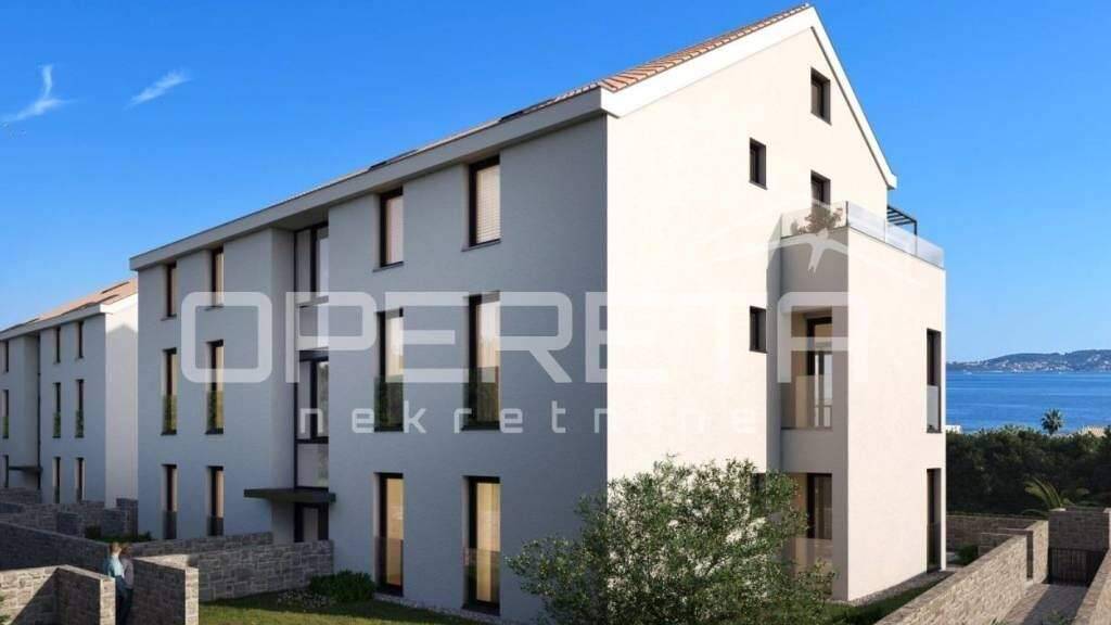 In einer ruhigen Gegend von Orebic befindet sich eine moderne Wohnung in einem Neubau, die Komfort, zeitgemäßes Design und einen Hauch von mediterranem Charme bietet. Die Wohnung mit einer Gesamtfläche von 89 m liegt im ersten Stock des Gebäudes und ist nach Süden ausgerichtet, was ihr den ganzen Tag über reichlich Tageslicht sichert. Das geräumige Wohnzimmer, das mit der Küche und dem Essbereich verbunden ist, schafft einen harmonischen Raum, der ideal für das tägliche Leben und gesellige Zusammenkünfte ist. Die Wohnung verfügt über zwei Schlafzimmer, von denen eines über ein eigenes Badezimmer verfügt, während die Loggia und die Terrassen einen perfekten Ort zum Entspannen im Freien bieten.