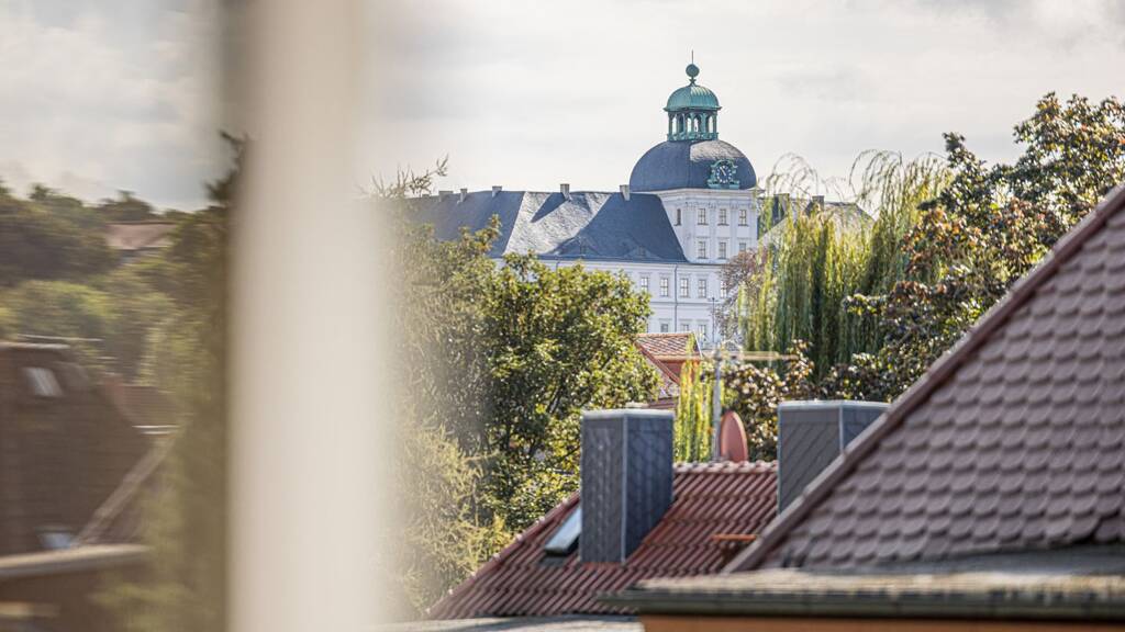 Über die stilvolle Treppe in der Diele erreichen Sie das Obergeschoss, wo zwei weitere freundliche Zimmer auf Sie warten. Besonders hervorzuheben ist der malerische Blick auf das Schloss von Weißenfels, der diese Räume zu etwas ganz Besonderem macht. Das großzügige Badezimmer ist im eleganten italienischen Stil gehalten und bietet mit Dusche und Badewanne pure Entspannung. Die hochwertigen Sanitärelemente von Villeroy & Boch sowie Geberit garantieren höchste Qualität.