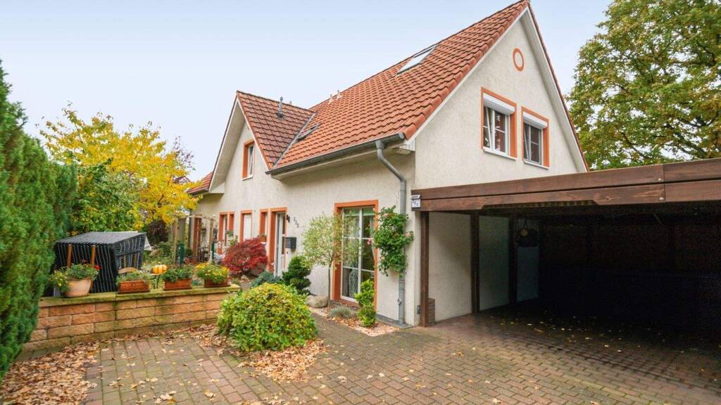 Zum Haus gehören ein Carport-Stellplatz sowie ein weiterer, kleiner Pkw-Stellplatz, die Ihnen komfortables Parken direkt am Haus ermöglichen. Das ca. 275 m² große Grundstück bietet ausreichend Platz zum Entspannen, Spielen oder Gärtnern - eine kleine Oase mitten in Kaltenkirchen.
