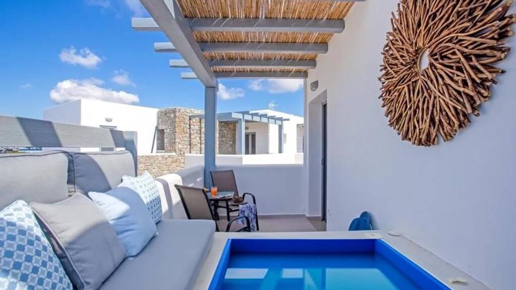 Das Anwesen befindet sich im Großraum Ano Mera in Richtung Kalo Livadi, in einem gepflegten Komplex, der 2022 gebaut wurde. Es kombiniert traditionelle kykladische