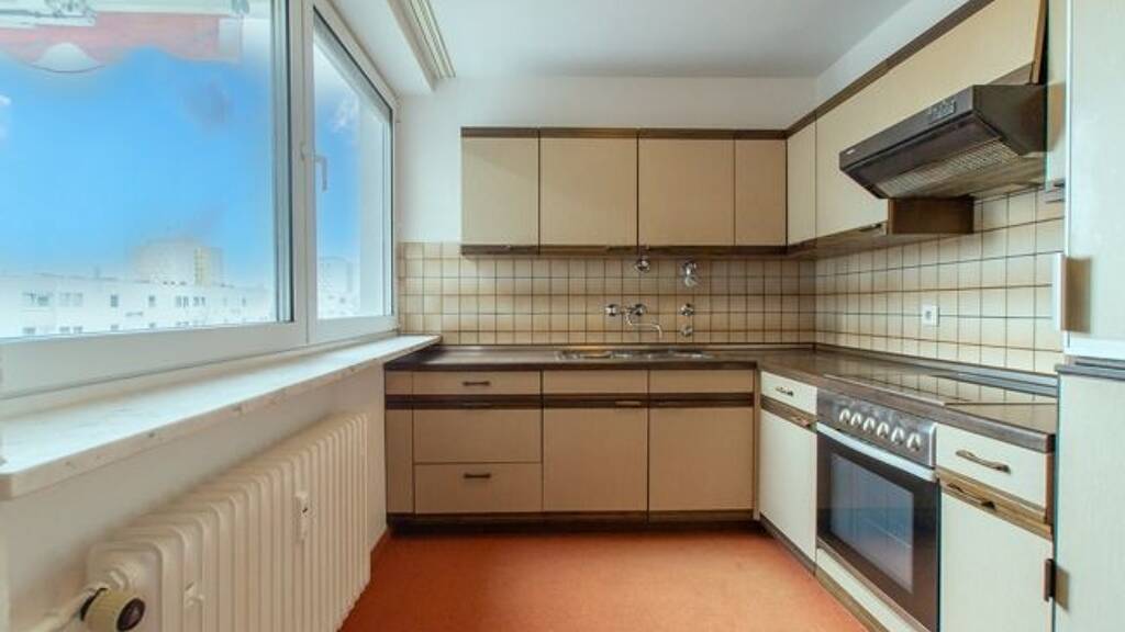 Die Wohnung selbst ist renovierungsbedürftig, Teppichböden, Bäder, Einbauküche sind stellenweise stark beansprucht. Dennoch macht die Wohnung einen gepflegten Eindruck. Eine Besonderheit zur Beschattung sind die in der Verglasung der Fenster verbauten Plissee-Rollos mit Zugband. Es gibt keine Aussenrolläden.