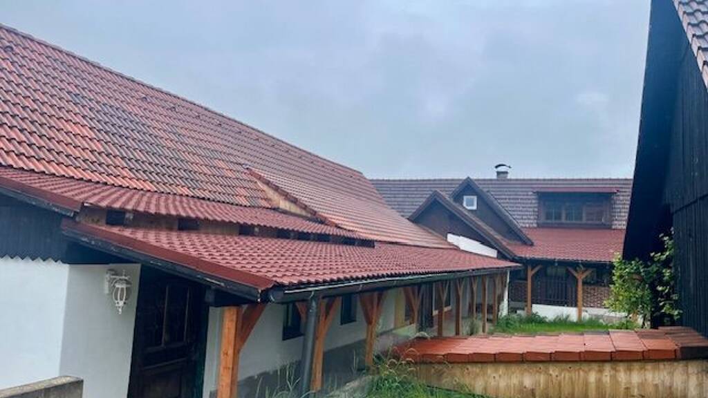 Das Dach und die Fassade vom Wirtschaftsgebäude ca. 100m² wurden bereits erneuert, Innen müsste es noch fertiggestellt werden.