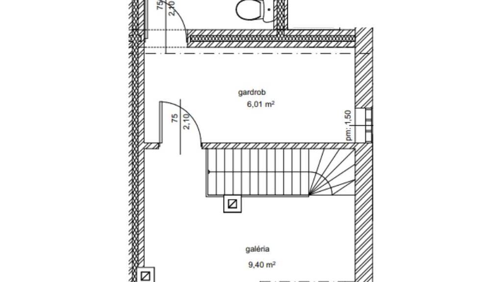 Die Raumhöhe in der Galerie beträgt 2,46 m. Hier befinden sich zwei Räume (die als Schlafzimmer/Garderobe genutzt werden können) sowie ein Badezimmer mit Dusche und WC. Darüber hinaus sorgt eine eingebaute Schrankwand für eine gute Raumnutzung.