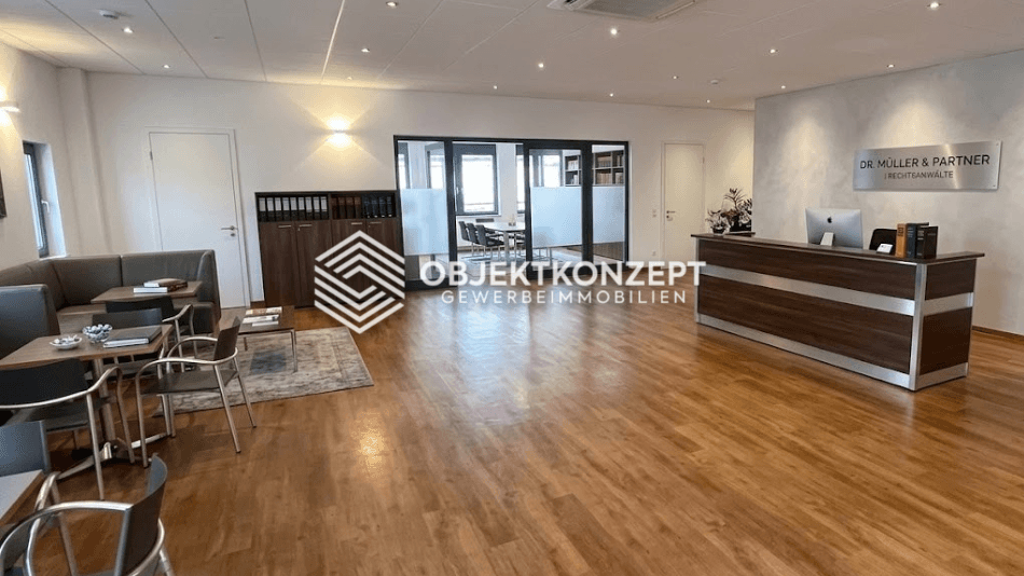 Auf zwei großzügigen Etagen eröffnet die Immobilie vielseitige gewerbliche Nutzungsmöglichkeiten. Der barrierefreie Eingangsbereich schafft einen repräsentativen Empfang und ermöglicht einen offenen Blick in das Obergeschoss. Die helle, freundliche Raumgestaltung mit großen Fensterflächen und elektrischen Jalousien sorgt für ein angenehmes Arbeitsumfeld. Eine moderne Klimaanlage sowie eine Kassettendecke mit integrierter Beleuchtung gewährleisten ein gleichmäßiges, effizientes Raumklima. Eine Brandmeldeanlage ist selbstverständlich vorhanden. 11 Parkplätze befinden sich direkt auf dem Grundstück und bieten zusätzlichen Komfort für Mitarbeiter und Besucher.