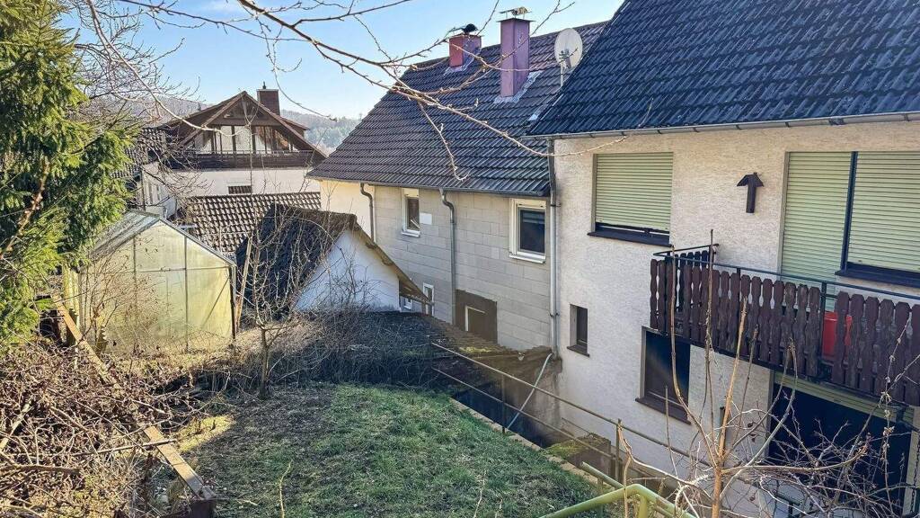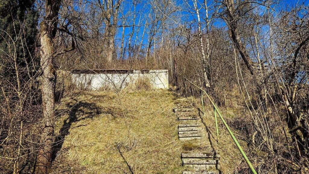 Zur Immobilie gehört eine Garage in etwa 20 Metern Entfernung. Das dazugehörige Hanggrundstück umfasst ca. 370 m². In der Garage ist Strom vorhanden.