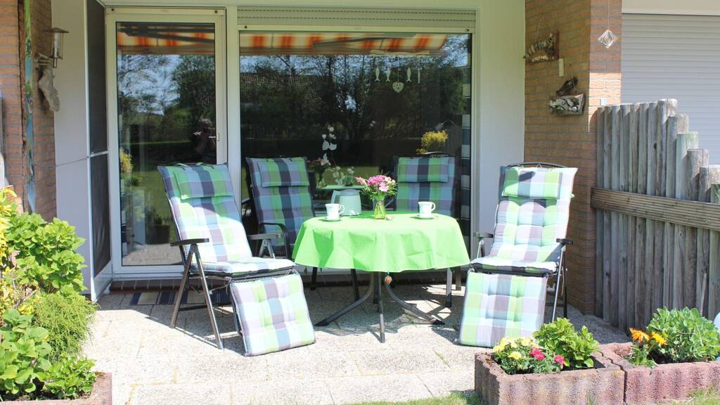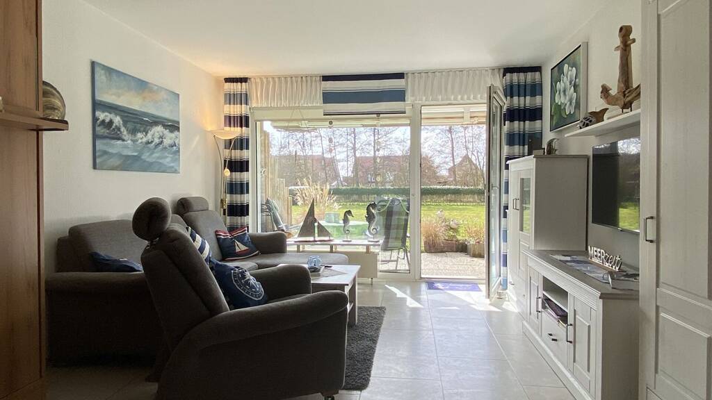 Zum Verkauf steht eine gepflegte Ferienwohnung mit Südterrasse und Gartenblick in der Nähe zum Südstrand und zum Naturschutzgebiet "Greune-Stee".