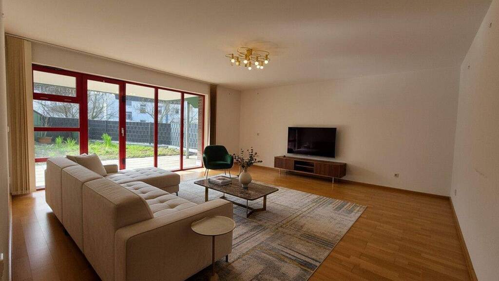 Raumaufteilung und Ausstattung Vom geräumigen Flur gehen alle Räume ab. Die Wohnung verfügt über eine Einbauküche, ein Schlafzimmer sowie ein Wannenbad mit Tageslicht,. Das Gäste-WC ist zusätzlich mit einer Dusche ausgestattet . Von der Küche und dem Schlafzimmer aus gelangt man direkt auf den Balkon. Das geräumige Wohnzimmer besticht durch fußbodentiefe Fenster und bietet einen Zugang zur großen Terrasse mit kleinem Garten - ein echtes Highlight für Familien, die gerne draußen Zeit verbringen. Zwei Kinderzimmer runden das familiengerechte Raumkonzept ab.