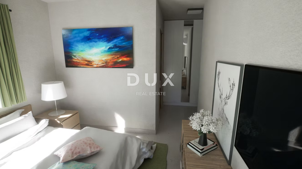Die Stadt Porec ist eine der schönsten Perlen der Adria, liegt an der Westküste Istriens und ist heute stolz das touristische, wirtschaftliche und kulturelle Zentrum Westistriens. Mit ihren Einwohnern, ihrer außergewöhnlichen geografischen Lage, ihren natürlichen und kulturellen Schönheiten sowie ihrem reichhaltigen touristischen Angebot in der Vor- und Nachsaison gehört sie zu den Trägern des Elite-Tourismusangebots auf Ebene der Republik Kroatien bzw. der Europäischen Union und ist das ganze Jahr über ein angenehmer Ort zum Verweilen und Leben mit zahlreichen Einrichtungen für ein qualitativ hochwertiges Stadtleben. Apartment C1 ist als zweistöckiges, halb unabhängiges Apartment mit zwei Schlafzimmern und einer Fläche von 104,58 m² konzipiert. Es verfügt über einen eigenen Parkplatz und einen privaten Garten von 165 m² mit ausreichend Platz für den Bau eines eigenen Pools (4 x 8 m). Das Apartment besteht aus einem offenen Wohn-/Esszimmer/Küche, zwei Schlafzimmern, einem Balkon, drei Bädern und einer überdachten Außenterrasse. Jedes Zimmer ist voll klimatisiert. Im Preis nicht inbegriffen sind Möbel, Swimmingpool und Küche.
