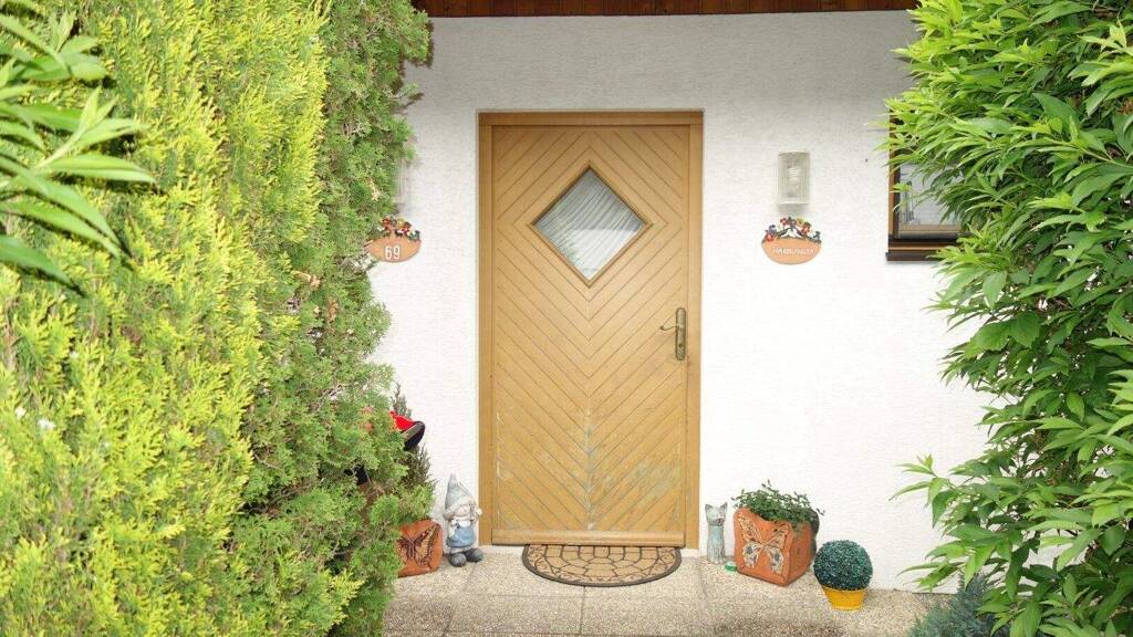 Das Haus kann sein Alter mit dem Baujahr 1990 gut verbergen. Die Fenster sind hochwertige und gut gepflegte Holzfenster und die Fassade sauber.