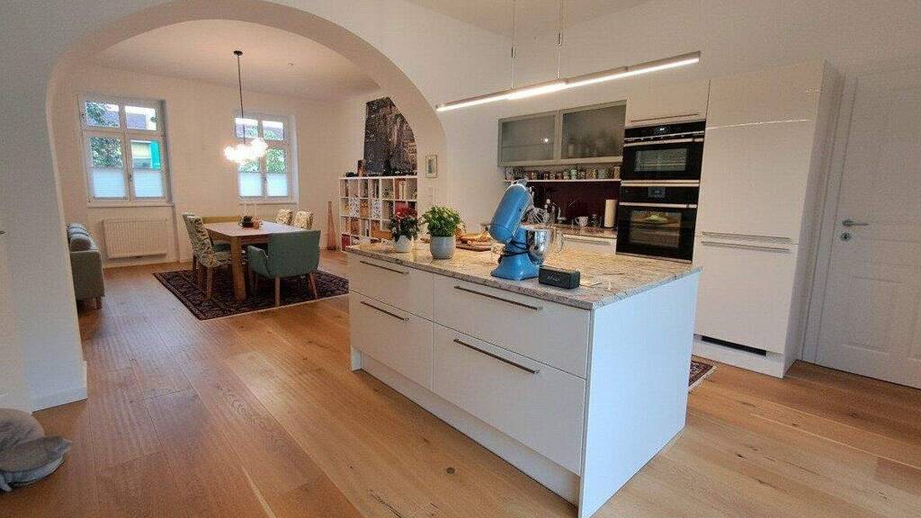 Zu den Highlights zählen die stilvolle Wohnküche mit dem historischen Kachelofen, die praktische Aufteilung mit dem begehbaren Kleiderschrankraum sowie der modernisierte Sanitärbereich und Wohnräume.