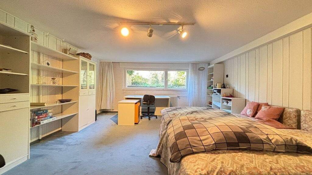 Das Grundstück und die Bebauungsmöglichkeiten Das großzügige Grundstück ermöglicht eine Neubebauung innerhalb eines ausgewiesenen Baufensters von ca. 190 m². Laut Bebauungsplan ist eine Bebauung mit bis zu eineinhalb Geschossen sowie einem Keller möglich. Dadurch lassen sich sowohl klassische Einfamilienhäuser als auch moderne Wohnkonzepte mit großzügigen Grundrissen realisieren. Besonders attraktiv ist die Kombination aus großem Grundstück und der ruhigen, naturnahen Lage direkt am Waldrand. Die Südausrichtung eröffnet zusätzlich hervorragende Möglichkeiten für große Terrassenflächen, einen weitläufigen Garten oder sogar einen Poolbereich. Der bestehende Baukörper kann je nach Planung ersetzt oder neu interpretiert werden. Dank der Größe des Grundstücks entstehen vielseitige Gestaltungsmöglichkeiten für Architektur, Gartenplanung und Außenanlagen. Zudem besteht optional die Möglichkeit, ein weiteres Baugrundstück abzutrennen. Diese Option müsste im Rahmen einer Bauvoranfrage mit den zuständigen Behörden abgestimmt werden und eröffnet zusätzliches Entwicklungspotenzial.
