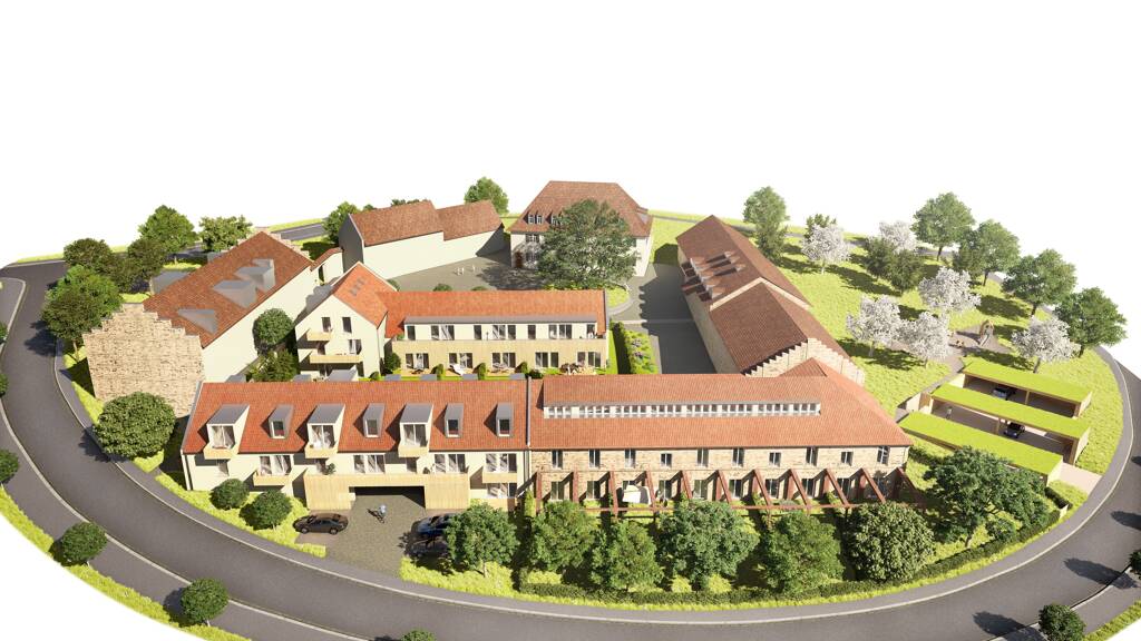 Mit diesem Gebäudeteil wird der bereits bestehende Rinderstall erweitert und das Ensemble zu einem runden Abschluss gebracht. Barrierefreiheit auf 50m² bis 100m² in 9 Wohnungen – perfekt geeignet für das junge Paar, das eine Familie gründen will aber ebenso für Alleinstehende oder das Ehepaar, das nach der Familienzeit einen Ruhesitz für den Lebensabend sucht. Die hellen Wohnungen mit privaten Balkonen laden ein zum Wohlfühlen und Ankommen.