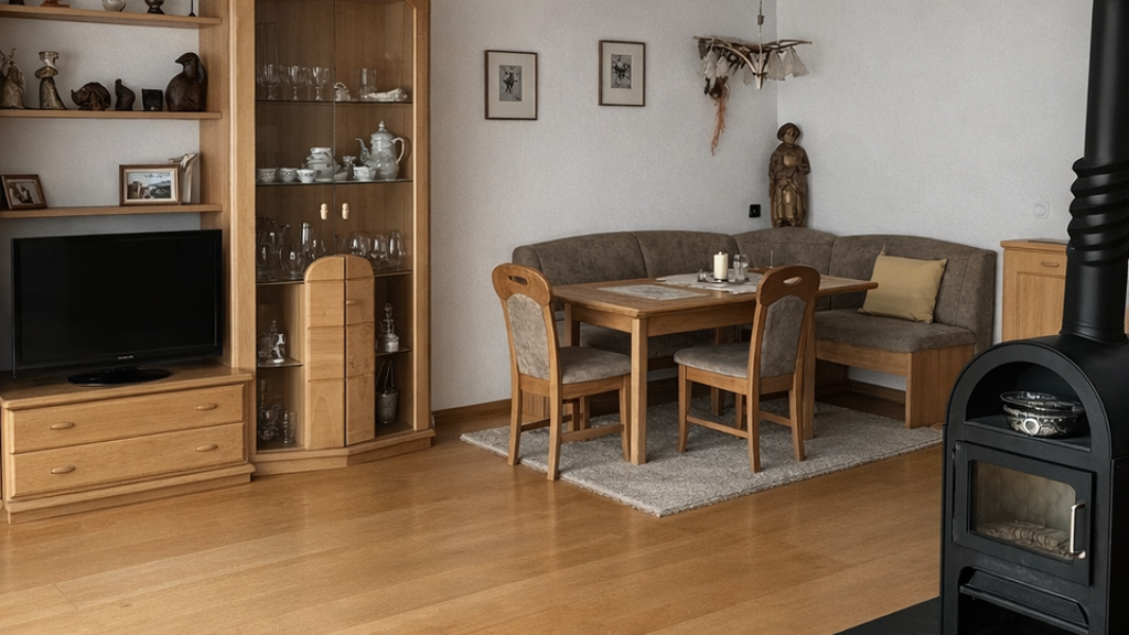 Das Haus ist voll unterkellert und bietet somit ausreichend Stauraum sowie vielseitige Nutzungsmöglichkeiten. Der einladende Wohnbereich wird durch einen gemütlichen Ofen ergänzt, der an kalten Tagen für wohlige Wärme sorgt. Im Erdgeschoss finden Sie zudem ein separates Gäste-WC, das den Komfort für Ihre Besucher erhöht.