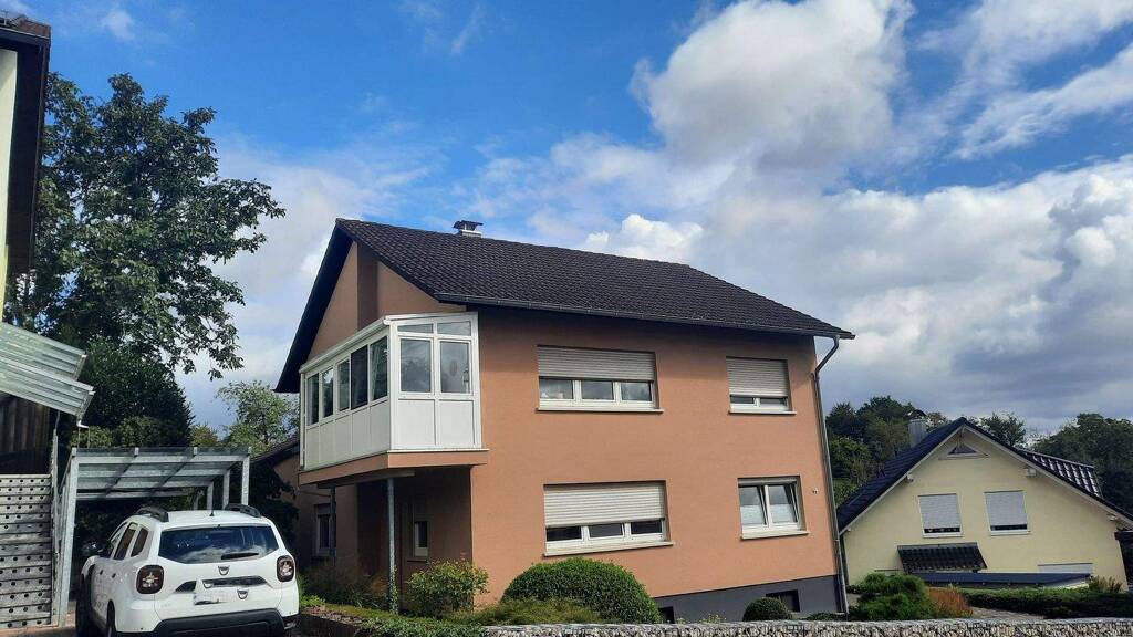 Das im ruhigen Wohngebiet Störchelberg gelegene freistehende Zweifamilienhaus mit ca. 174 m² Wohnfläche wurde 1967 erbaut und 1993 renoviert und erweitert. Zwischenzeitlich wurde es nach dem Wohnungseigentumsgesetz in zwei Eigentumswohnungen geteilt – und zwar in eine großzügige 4-Zi-Wohnung mit Terrasse und direktem Gartenzugang im EG mit 101 m² Wohnfläche, und eine gemütlich ausgestattete 2-Zi-Wohnung mit Wintergarten und zusätzlichem Hobbyraum im OG mit 73 m² Wohnfläche. Hinter dem Haus schließt sich ein idyllischer Garten an. Zu dem 1.127 m² großen Grundstück gehören eine Garage, ein Carport und 2 PKW-Stellplätze im Freien.