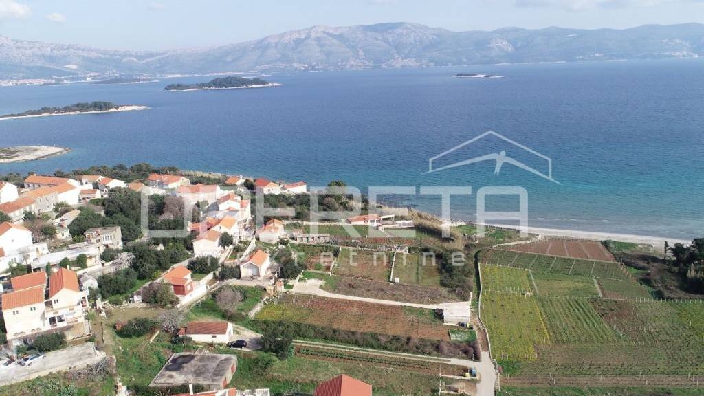 Zum Verkauf steht ein attraktives Grundstück von 1171 m2, gelegen in Lumbarda, an einem der attraktivsten Standorte der Insel Korcula. Der größere Teil des Grundstücks hat eine Bauwidmung, während ein kleinerer Teil landwirtschaftlich genutzt werden kann, was zahlreiche Entwicklungsmöglichkeiten bietet. Das Grundstück befindet sich in unmittelbarer Nähe des bekannten Sandstrandes Bilin Zal, der nur zwei Gehminuten entfernt ist, was es äußerst attraktiv für den Bau von Häusern oder touristischen Objekten macht.