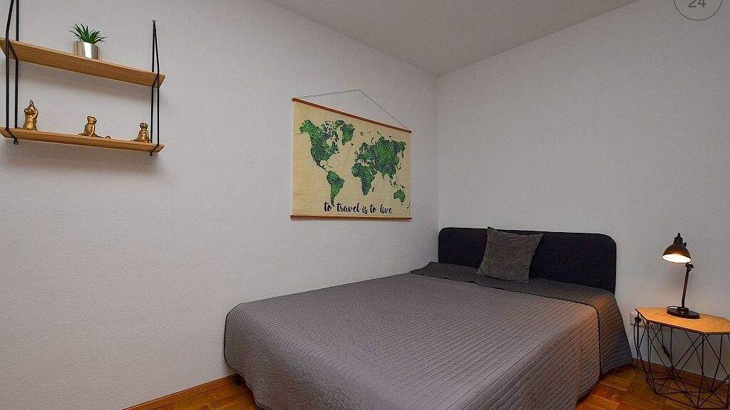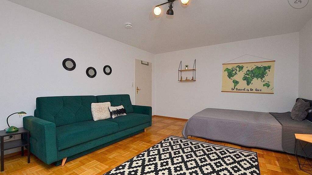 Die ca. 31m² große Wohnung, welche mit Parkettboden ausgelegt ist, befindet sch im 2.Obergeschoss eines Mehrfamilienhauses. Der moderne Schlaf- und Wohnraum ist mit einem 1,40m breiten Bett, Kleiderschrank, Couch mit Couchtisch, Regal mit TV und einem kleinen Esstisch für zwei Personen eingerichtet. Separat befindet sich nebenan eine Einbauküche, welche mit allen nötigen Küchenutensilien, zwei Herdplatten, Kühlschrank, Wasserkocher, Kaffeemaschine und einer Mikrowelle ausgestattet ist. Das hell geflieste Bad verfügt über eine Dusche und ein WC. Weiteren Stauraum ist im Flur hinter einem Vorhang gegeben. In der angegebenen Miete ist eine Betriebskostenpauschale von 180€ enthalten. Hinzu kommen die Kosten für Strom nach Verbrauch. Die Kosten für Wlan (Telekom) betragen 40€/Monat. Bei Auszug wird eine Endreinigung nach Aufwand mit der Kaution verrechnet. Über die Alte Mainbrücke ist die Innenstadt in 3 Gehminuten erreichbar.