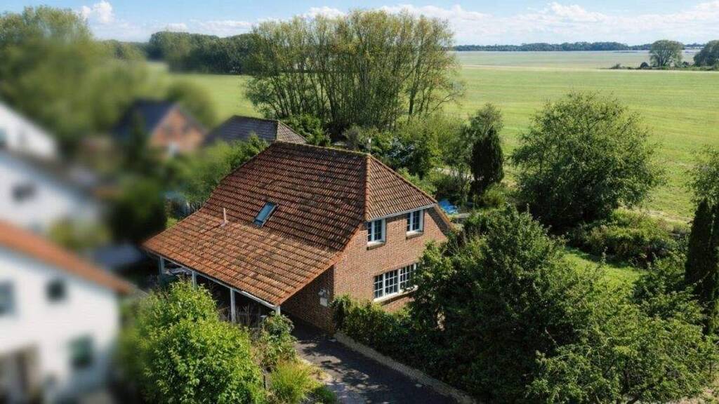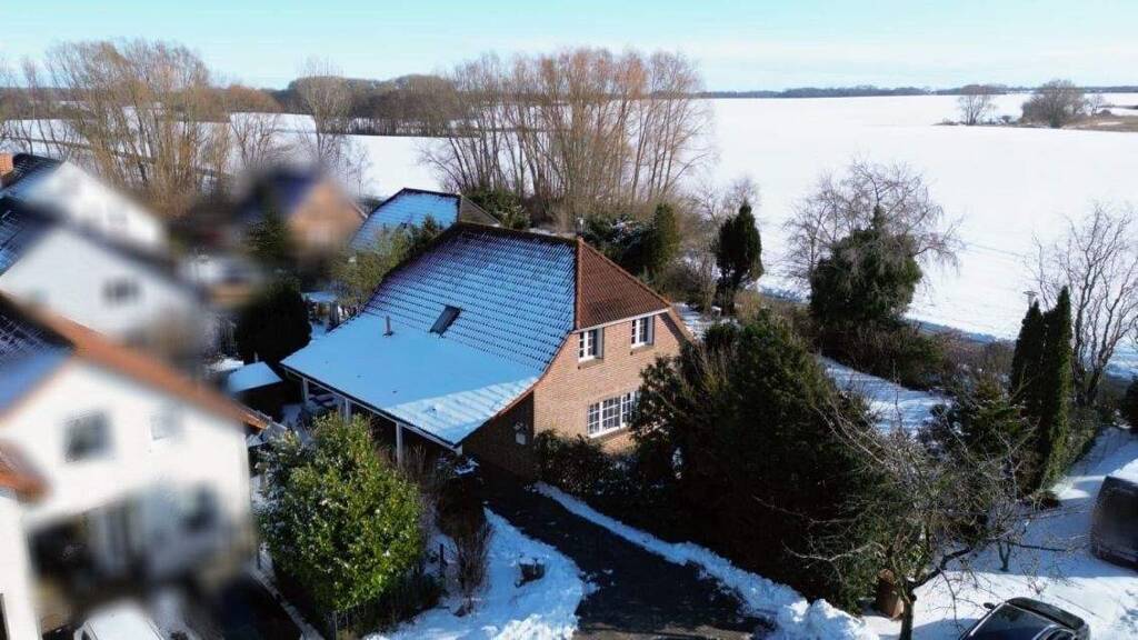 Schon beim Betreten des Hauses entsteht ein angenehmes Wohngefühl. Ein kleiner Vorraum empfängt Sie und führt weiter in den Hauswirtschaftsraum sowie in die zentrale Diele des Erdgeschosses. Die Küche verbindet zusätzlich die Diele mit dem Wohn- und Essbereich. Diese durchdachte Gestaltung sorgt für kurze Wege im Alltag und schafft gleichzeitig eine offene, einladende Wohnatmosphäre. Der großzügige und helle Wohn- und Essbereich bildet das Herz des Hauses. Von hier aus gelangen Sie direkt auf die Südterrasse und in den Garten, wo der Blick ins Grüne und die ruhige Umgebung den Alltag schnell vergessen lassen.