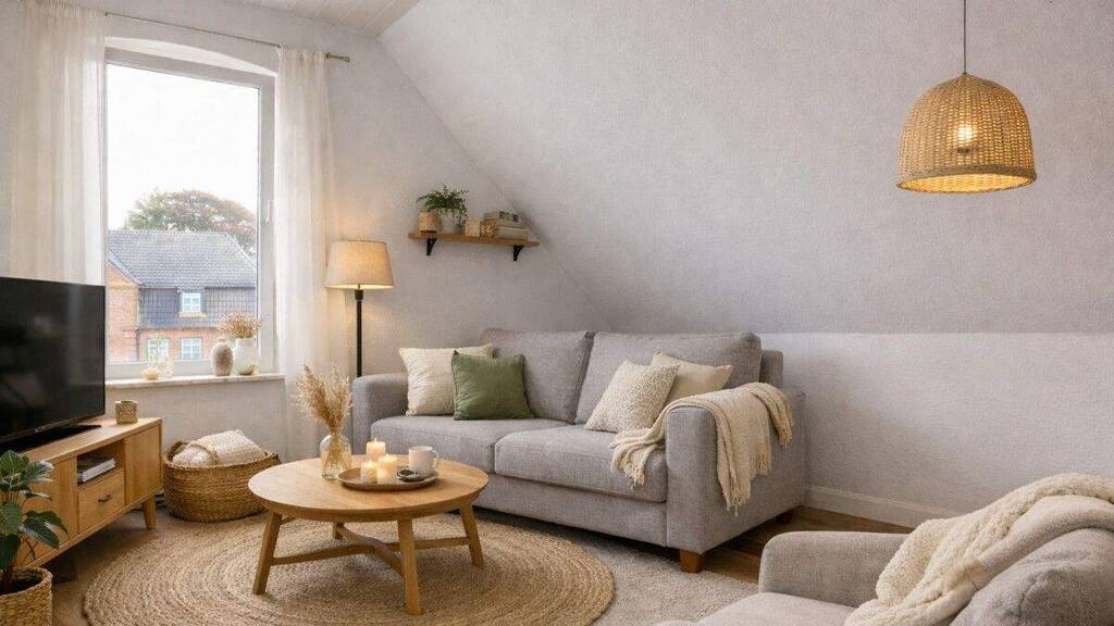 Der lichtdurchflutete Wohnbereich bildet das Herzstück der Wohnung und schafft eine einladende Atmosphäre zum Entspannen und Wohlfühlen. Die Küche ist kompakt und funktional gestaltet - perfekt für den täglichen Gebrauch.