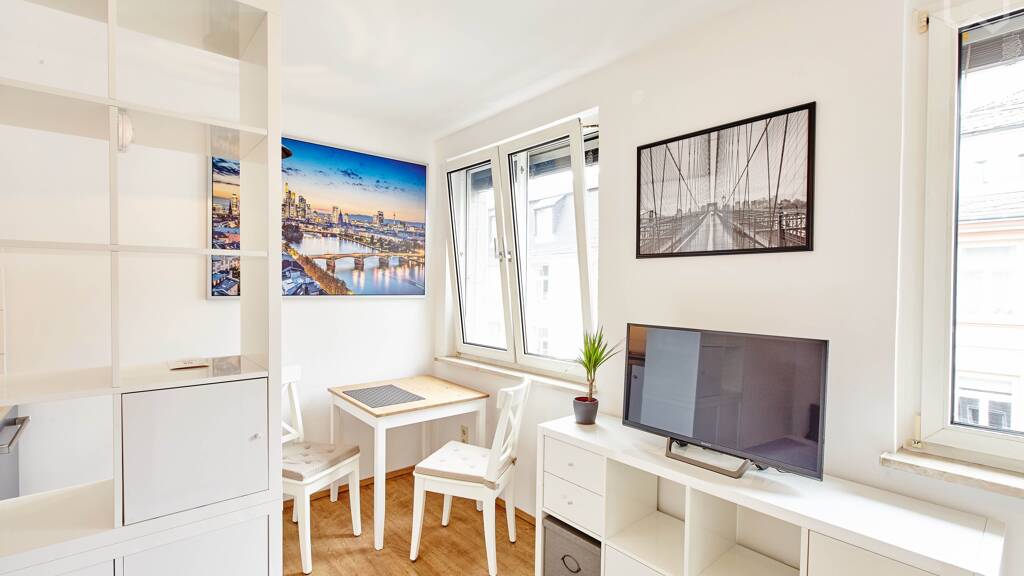 Das Apartment befindet sich im 3. OG eines Altbaus in der Throner Strasse, 60385 Frankfurt und ist ca 21 qm groß. Es besteht aus einem kleinen Flur, einem separaten Bad mit Dusche und einem Zimmer mit Kochecke.