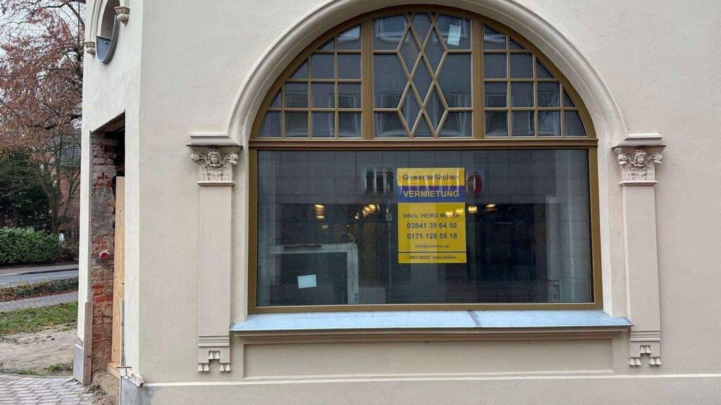 Der Hauptraum ist ebenerdig erreichbar und verfügt über zwei große Schaufenster.